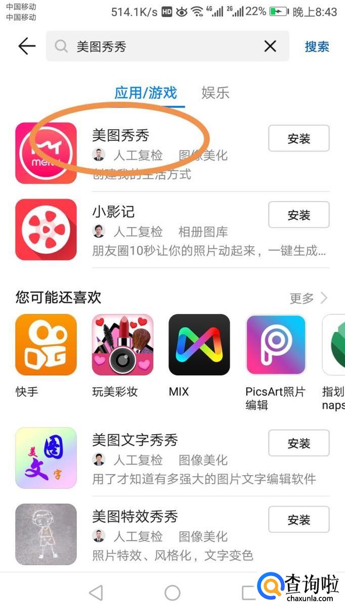 首先,需要一个美图秀秀APP,因此可以在应用商店搜索并下载美图秀秀,如图所示
