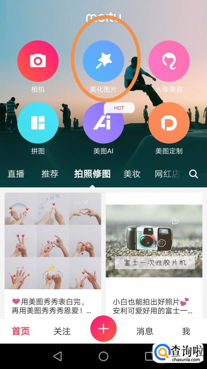 然后,下载并安装完成后,打开APP,点击【美化图片】,如图所示