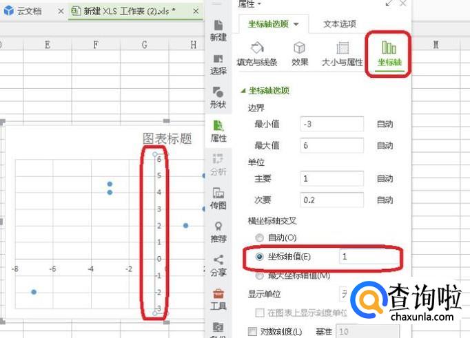 我们可以调整一下图的格式,比如点击选中坐标轴,按右键,选择“坐标轴格式”,如图所示,我们可以设置横坐标交叉于“1”,这样,整个图形更对称一些。调整其他格式,比如数据、横坐标等,也是选中后点击右键,设置格式。