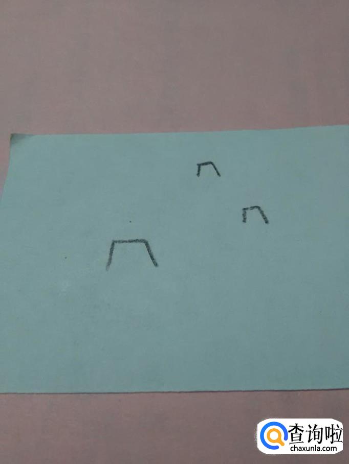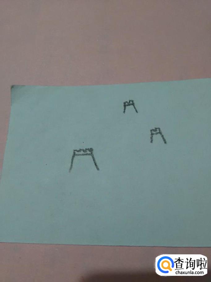 先用黑笔在纸上画三个没有底边的梯形,表示城楼。