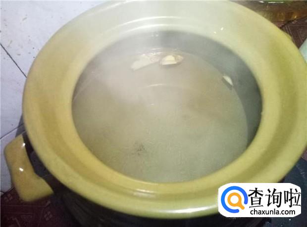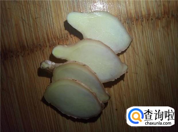 把姜切成片,砂锅里放入几篇姜,放入水,先煮开。