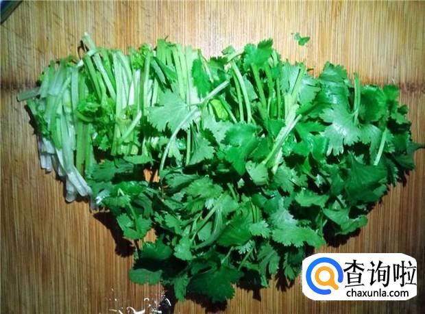 香菜切段,备用。