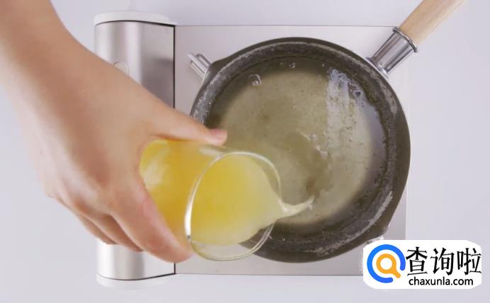 然后,往锅里倒入新鲜的柠檬汁,一起混合搅拌均匀。