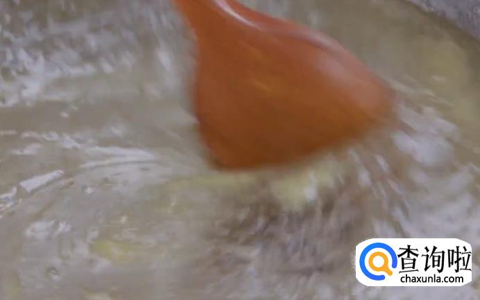 把做好的姜茸放入糖水中煮10分钟左右,在煮的时候需要不停地搅拌。