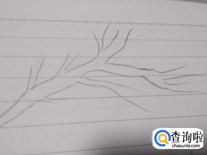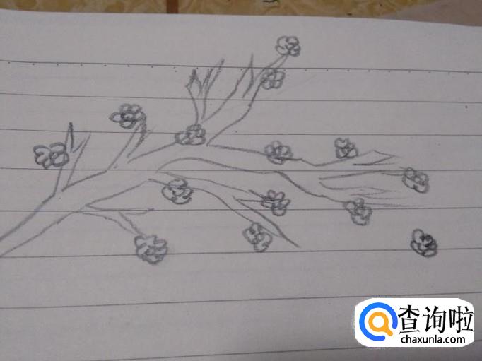最后画出五瓣的梅花,在树枝的不同地方添加上就可以啦。
