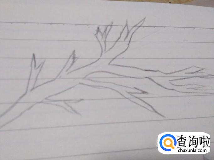 接着把枝丫的末端封口,不要画得太死板,用一些斜线封口。