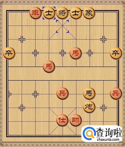 黑方士5退4,黑方虽然退士造成红方马可以肆无忌惮的乱跳,但是,黑方别无办法,只有通过退士才能抵挡的住红方车的将军。如图所示。