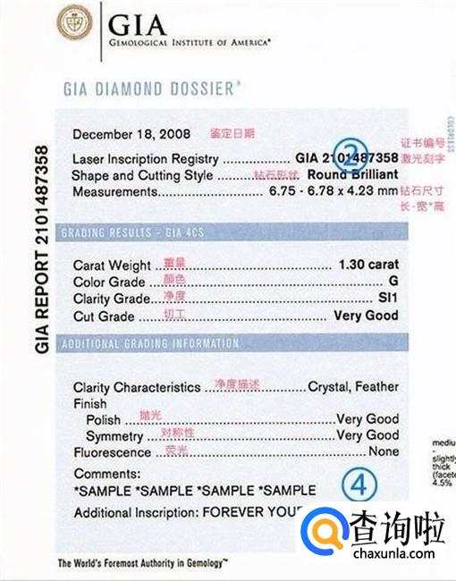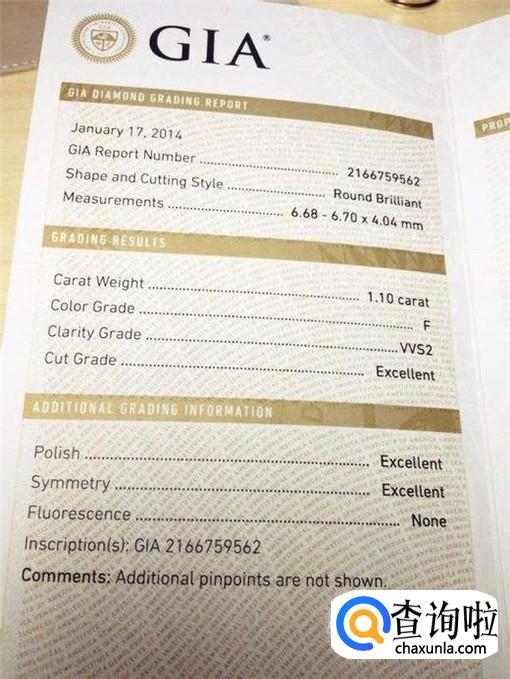 另外,钻石证书上都会写有钻石的其它专业数据,比如钻石的抛光度之类的数据,这都是值得我们参考的。