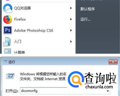 在“开始”菜单中打开“运行”窗口,输入“dcomcnfg”,点击“确定”打开“组件服务”窗口。