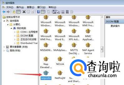 依次展开“计算机”—“我的电脑”—“DCOM配置”,鼠标右击“netprofm”,选择“属性”。