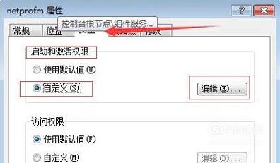 切换到“安全”选项卡,点击“启动和激活权限”的自定义,然后选择“编辑”。