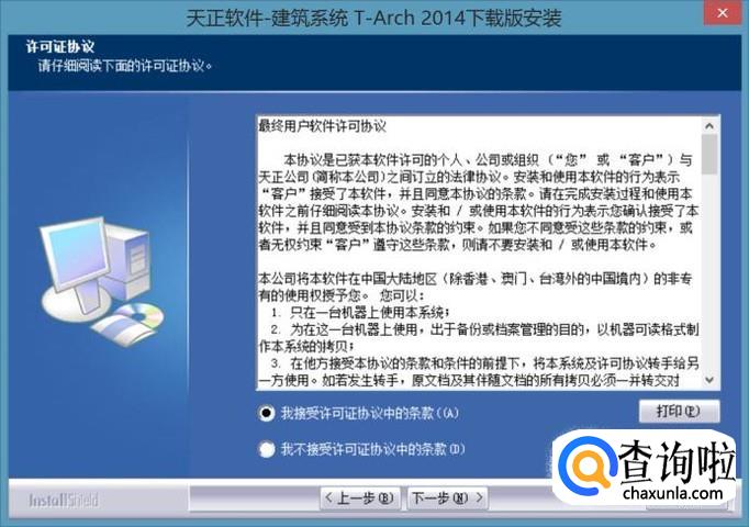下载解压,双击“天正建筑2014下载版.exe”开始安装试用版。点击同意。