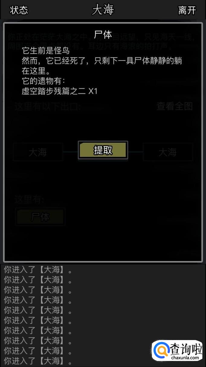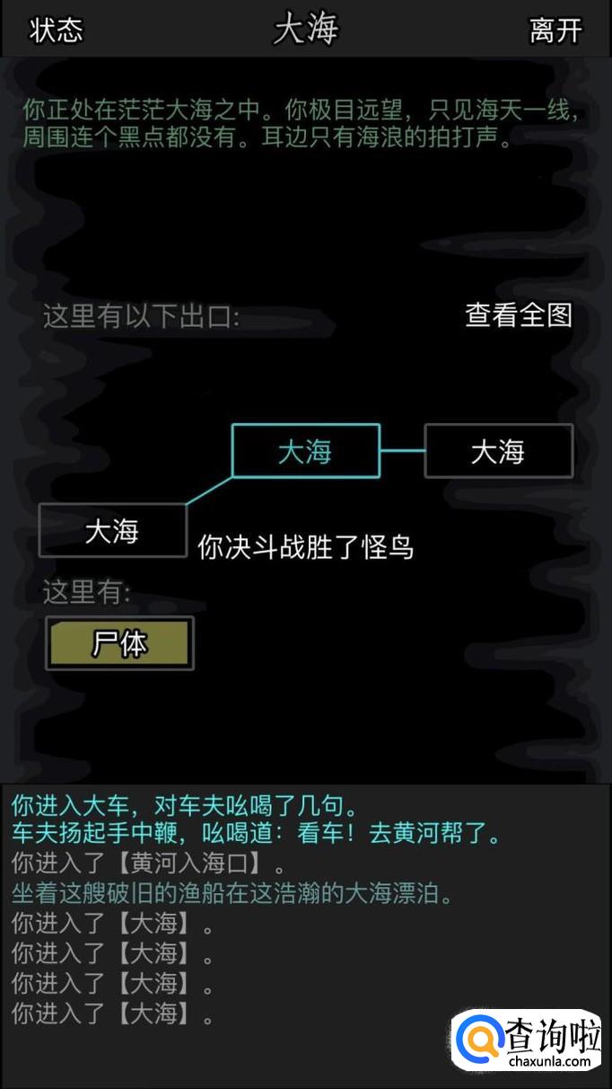 然后坐上渔船,进入大海,这里的出口是随机出现的,所以我们乱走就可以了,一般左下是正确的出口,遇到怪鸟就把他杀了,有时候怪鸟会爆残卷,我们可以查看一下尸体。