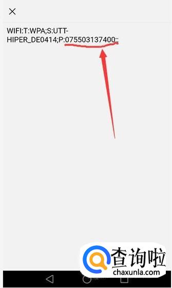 扫描上方的WiFi二维码之后出来的是一串英文字母和数字,其中,在第二行后面的才是WiFi密码。