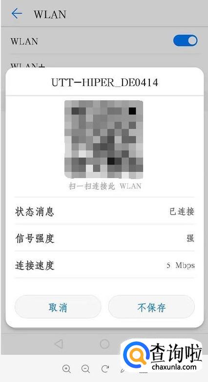 你点击空白处之后会显示该WiFi的信息,有个二维码,让别人扫描这个二维码可以知道这个WiFi的密码。