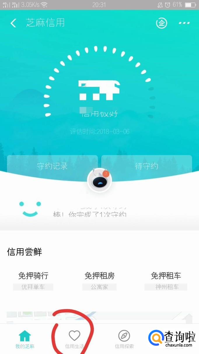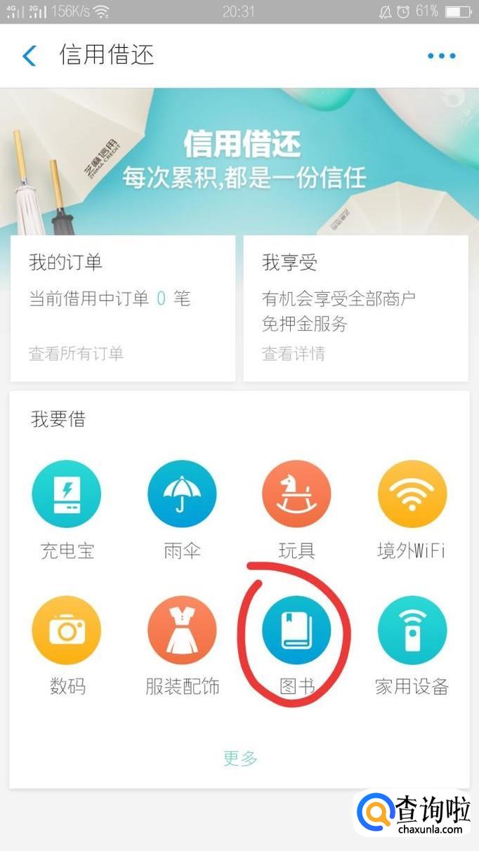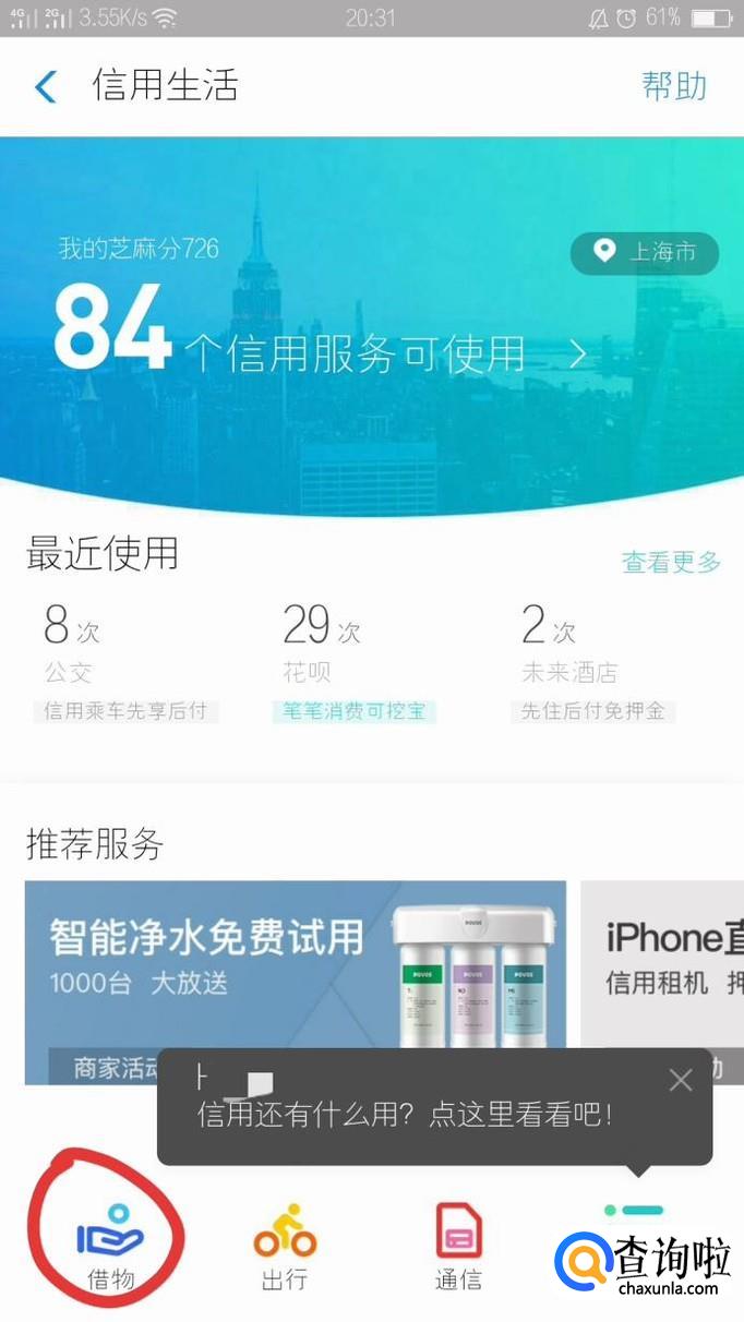 然后点击信用生活中的“借物”,如下图红色标注所示。