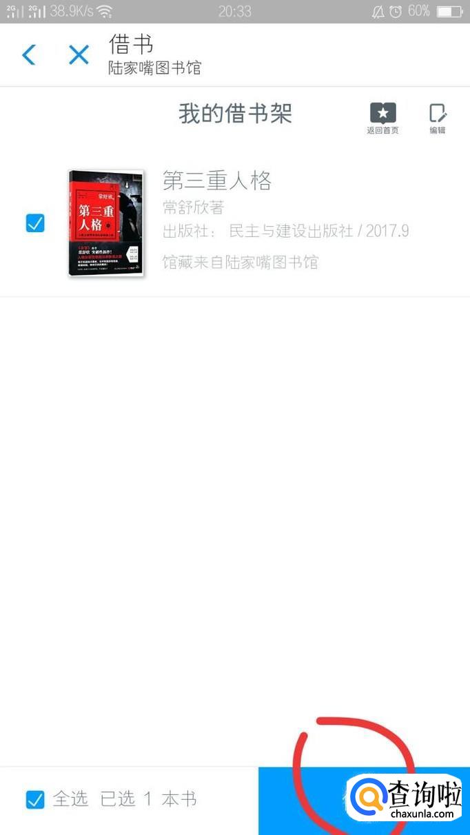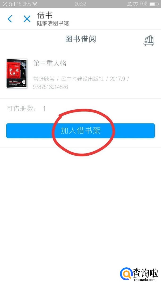 点击右上角的我的借书架,确认选择借的图书,点击借阅。