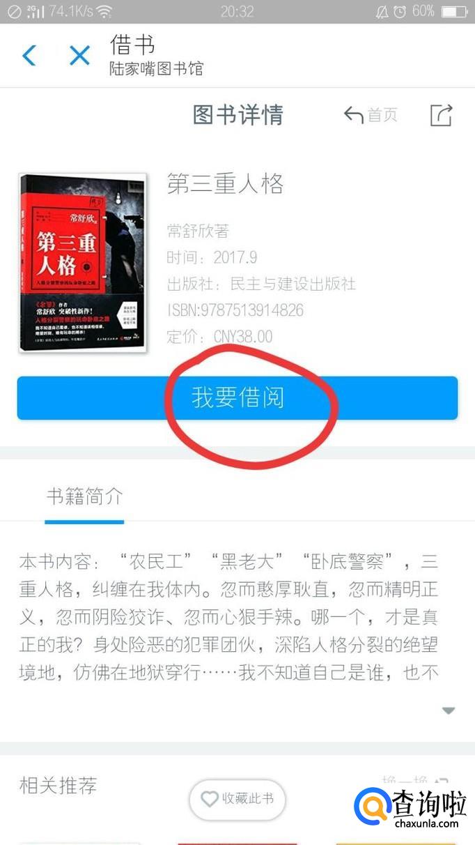 选择一本我们想要借的一本图书,然后点击我要借阅。