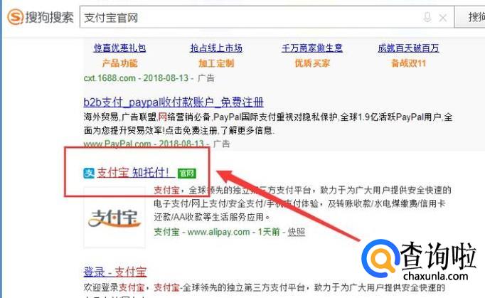 进入之后,搜索“支付宝官网”,然后在搜索界面选择并进入,如图所示。
