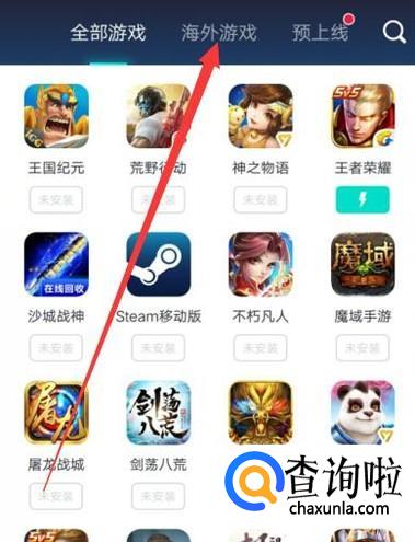 进入之后,点击“海外游戏”,进入下一页面,如图所示。