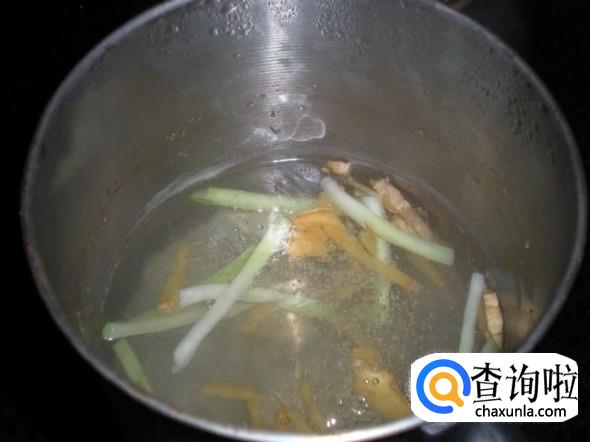 锅内加入生姜、葱白和水,上火煮开后熬10分钟。