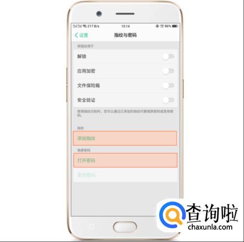 进入手机的设置页面,找到指纹相关的条目,点击进入进行指纹相关设置。
