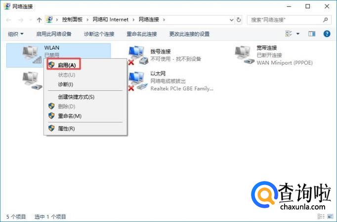 之后我们再右击,弹出的界面,我们点击启用,之后我们可以看到网络便连接上了,这是为了重启我们电脑内部的无线网卡,之后就可以上网了。