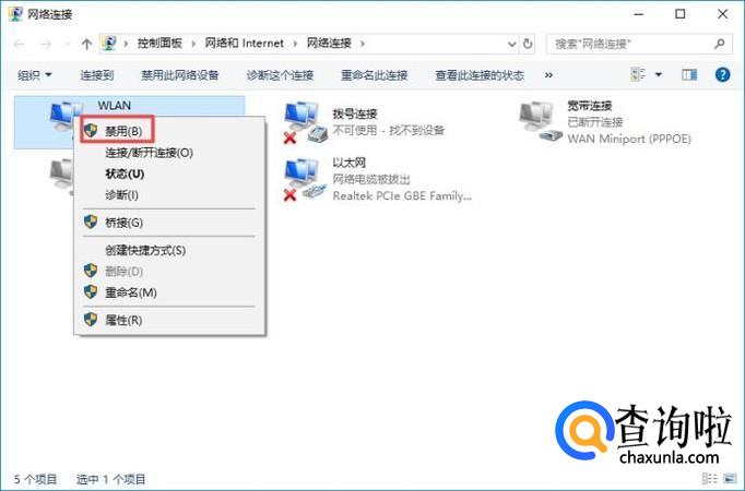 弹出的界面,我们右击我们连接的网络,也就是上面显示为感叹号的网络,弹出的界面,我们点击禁用;