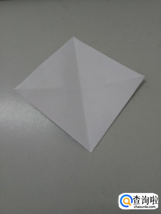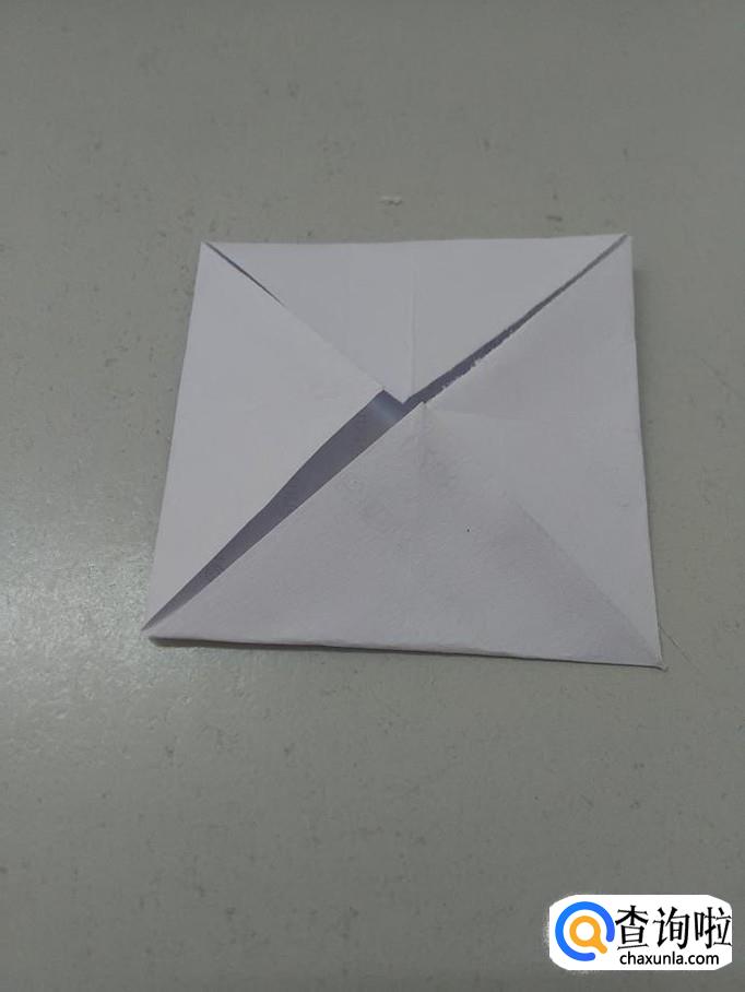 准备一张正方形的纸, 将正方形的四个角对折,然后打开,得到中间的两条线。