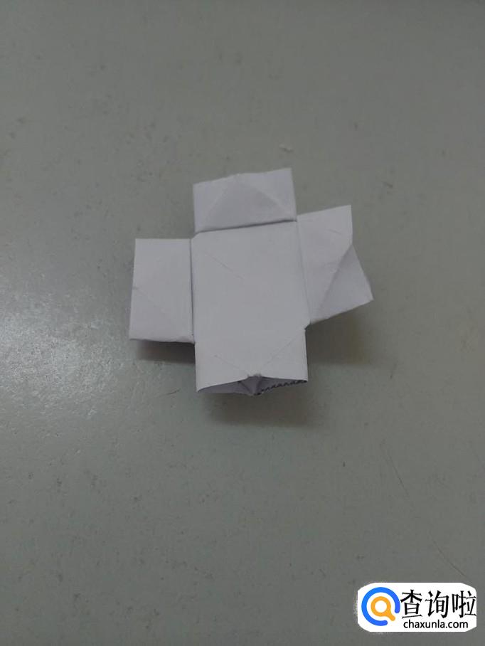 将一个长方形向上立起来,其他三个长方形向下立起来,靠背椅就折好了。