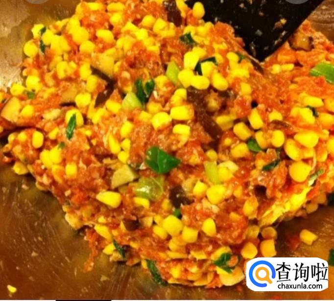 然后把猪肉搅碎,玉米粒用水煮熟,将玉米粒拌入猪肉馅里,充分搅拌,最后加入葱花搅拌均匀;