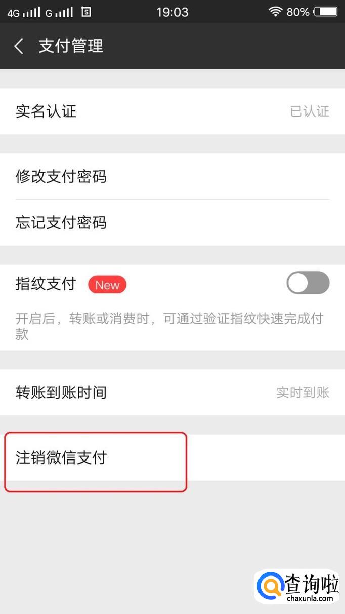 然后,在下一页面内,点击“注销微信支付”。注意,每个微信号注销之前都要把零钱取出,理财通内的产品卖掉提现才可以,否则注销不了。