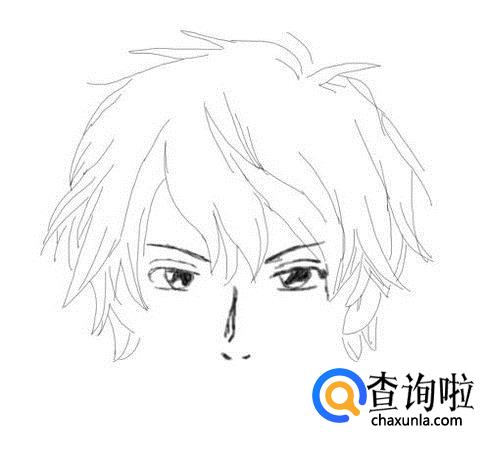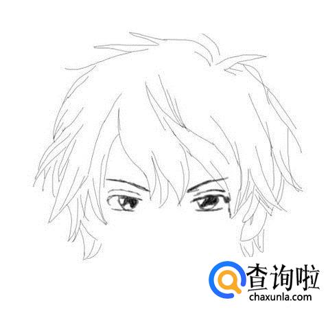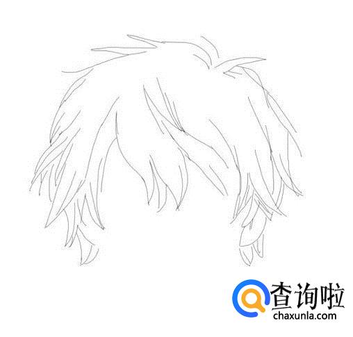 首先画出动漫男生的头发,然后在头发上画出男生的头发丝,如图所示: