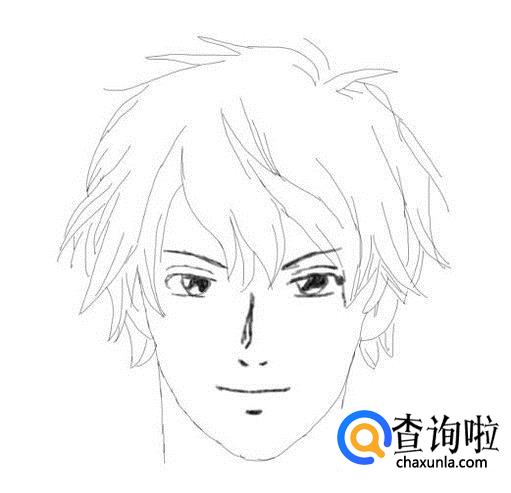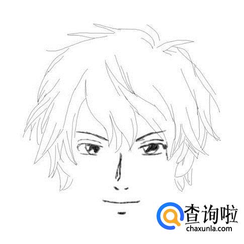 在鼻子下面再画出动漫男生的嘴巴,如图所示: