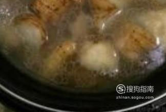 起锅烧水,水开后放入姜块,排骨,天麻炖煮。