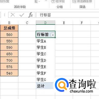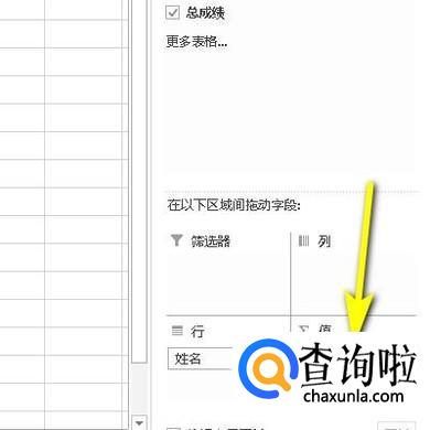 同样操作,鼠标放在“总成绩”这里,拉到“值”这里。