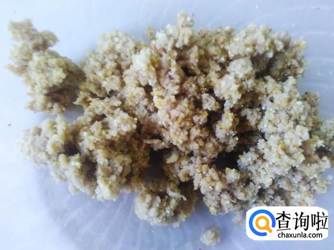 捞上来过一下冷水,然后抓干水份,放到打浆机加少量的水打成浆糊。