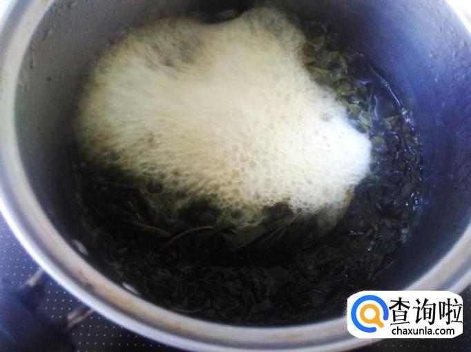 艾草,我是要晒干的,晒干的没苦味,把干艾叶放水里清洗干净,锅装适量的水煮沸,然后放艾叶进去灼一下水。