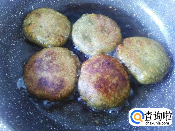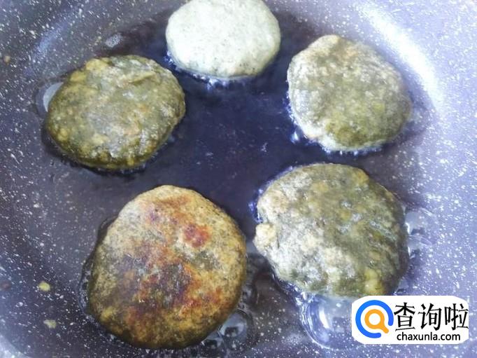 开火下油,油量要多点,然后放做好的小饼进去,用小火煎炸,煎炸到小饼两面金黄色,大概7分钟左右就可以了。