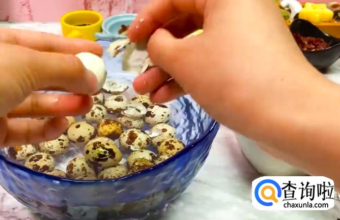 把鹌鹑蛋的壳剥掉,然后放在碗中备用。