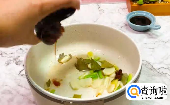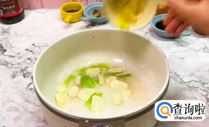 在热锅中加油,然后撒入葱、姜、蒜进行爆香。