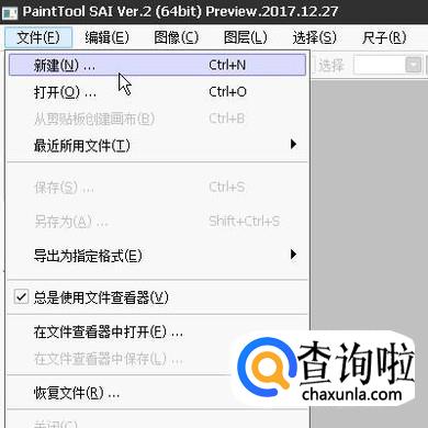 首先,我们要启动SAI软件,进入到操作界面中。再点菜单栏的文件,弹出下拉列表,再点:新建