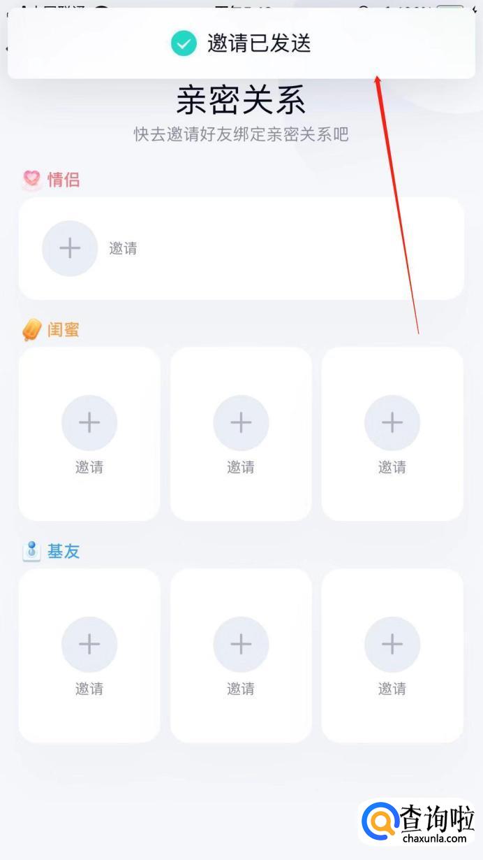 最后会提示“邀请已发送”,这时我们等待好友接受邀请就可以了。