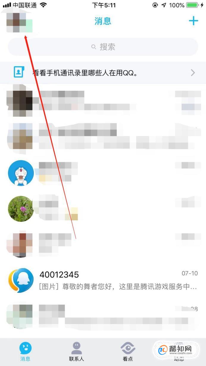 首先,打开手机qq,进入消息页面后,点击左上角的头像。