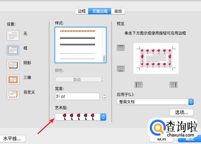 看下文档,成功添加上了艺术型的边框了。