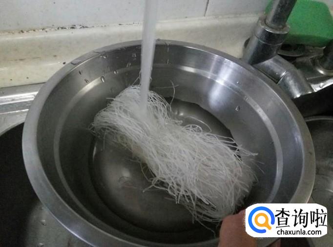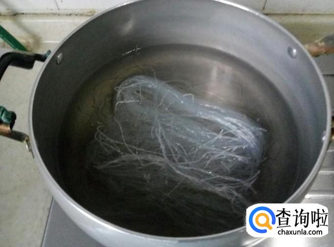 首先需要拿出粉丝,将粉丝放入盆中清洗干净。其实有很多人在做粉丝的时候以为粉丝不用洗,但其实这是错误的,粉丝中也有很多灰尘和杂质,其实是需要经过清洗才能使用的,在清洗好粉丝以后我们可以把粉丝放到烧开的锅中