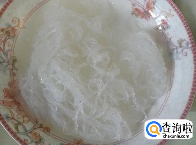 如下图所示,小编用一个盘子将粉丝盛出,然后先放在一边,等其静置凉透