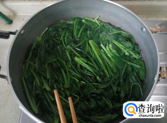 然后将菠菜放入煮开的锅中,菠菜一般熟的特别快,大家可以等30秒到两分钟就可以捞出了。
