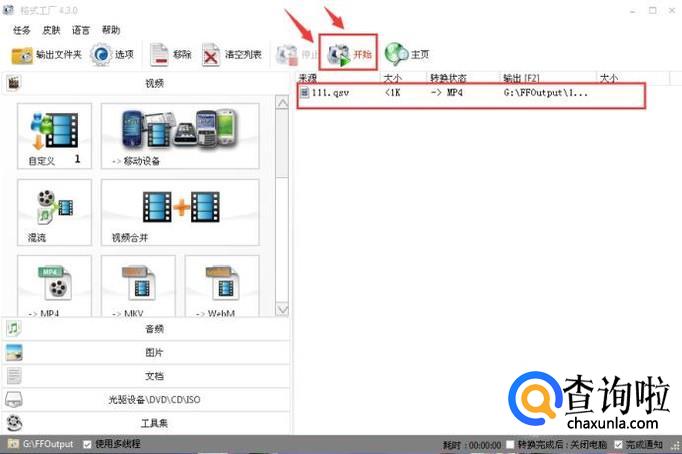 选中要转换的任务,点击“开始”即可。