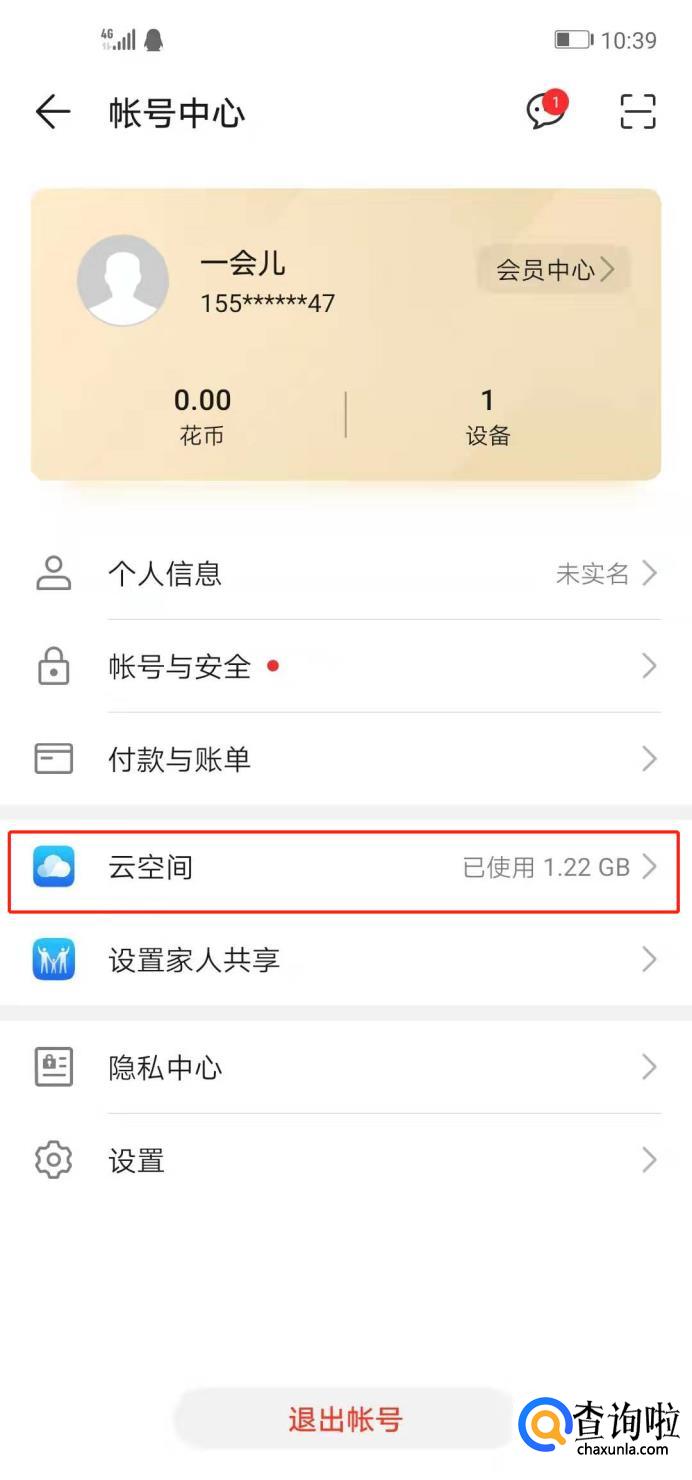 找到云空间,旁边还能看到已使用容量大小。